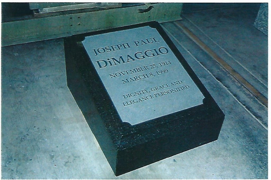 “JOSEPH PAUL DiMAGGIO,” the inscription says, “NOV. 25 1914-MAR. 8 1999.